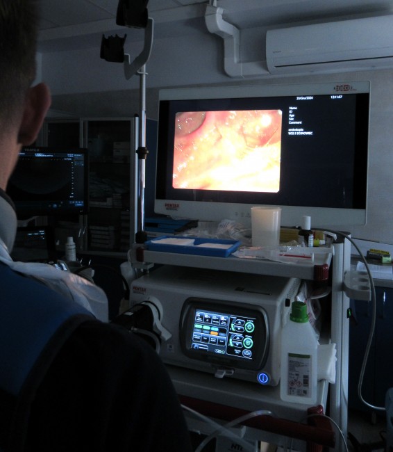 Teraz w sosnowieckiej lecznicy wykonywane są również zabiegi na drogach żółciowych wykorzystujące technikę tzw. cholangioskopii SpyGlass. To najnowocześniejsza opcja pozwalająca skuteczniej niż dotychczas rozpoznawać choroby nowotworowe dróg żółciowych, jak i możliwie najmniej inwazyjnie, bo endoskopowo, leczyć powikłania tej choroby np. żółtaczkę mechaniczną. Dzięki pozyskaniu nowego sprzętu Oddział Gastroenterologii dołączył do grona nielicznych ośrodków w Polsce wykonujących tego typu zabiegi – podkreśla dr n. med. Dawid Szkudłapski, kierownik Oddziału Gastroenterologii w Wojewódzkim Szpitalu Specjalistycznym nr 5 im. św. Barbary.